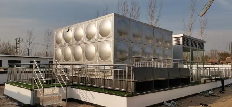 河北省滄州市東光縣河畔新城裝配式不銹鋼保溫水箱已經(jīng)安裝完成,保溫為聚氨酯保溫50厚,外殼為304不銹鋼。