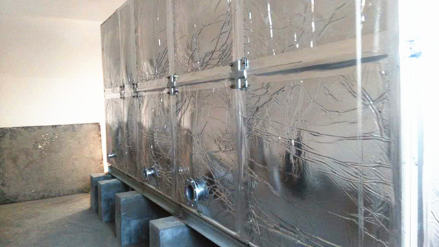 此水箱外圍為鋁箔布橡塑保溫,客戶在找到我們時(shí)根本不了解水箱保溫情況,只告訴我們水箱是在學(xué)校用,供學(xué)校學(xué)生用水。水溫要保存好才行。經(jīng)過(guò)我們的了解,我公司向客戶提供使用玻璃鋼材質(zhì),外加橡塑保溫。水箱材質(zhì)用水既安全、衛(wèi)生又耐用,用個(gè)十多年沒(méi)問(wèn)題,而且橡塑保溫價(jià)格便宜,水溫在24小時(shí)之內(nèi)能保持10-30度左右是沒(méi)有問(wèn)題的