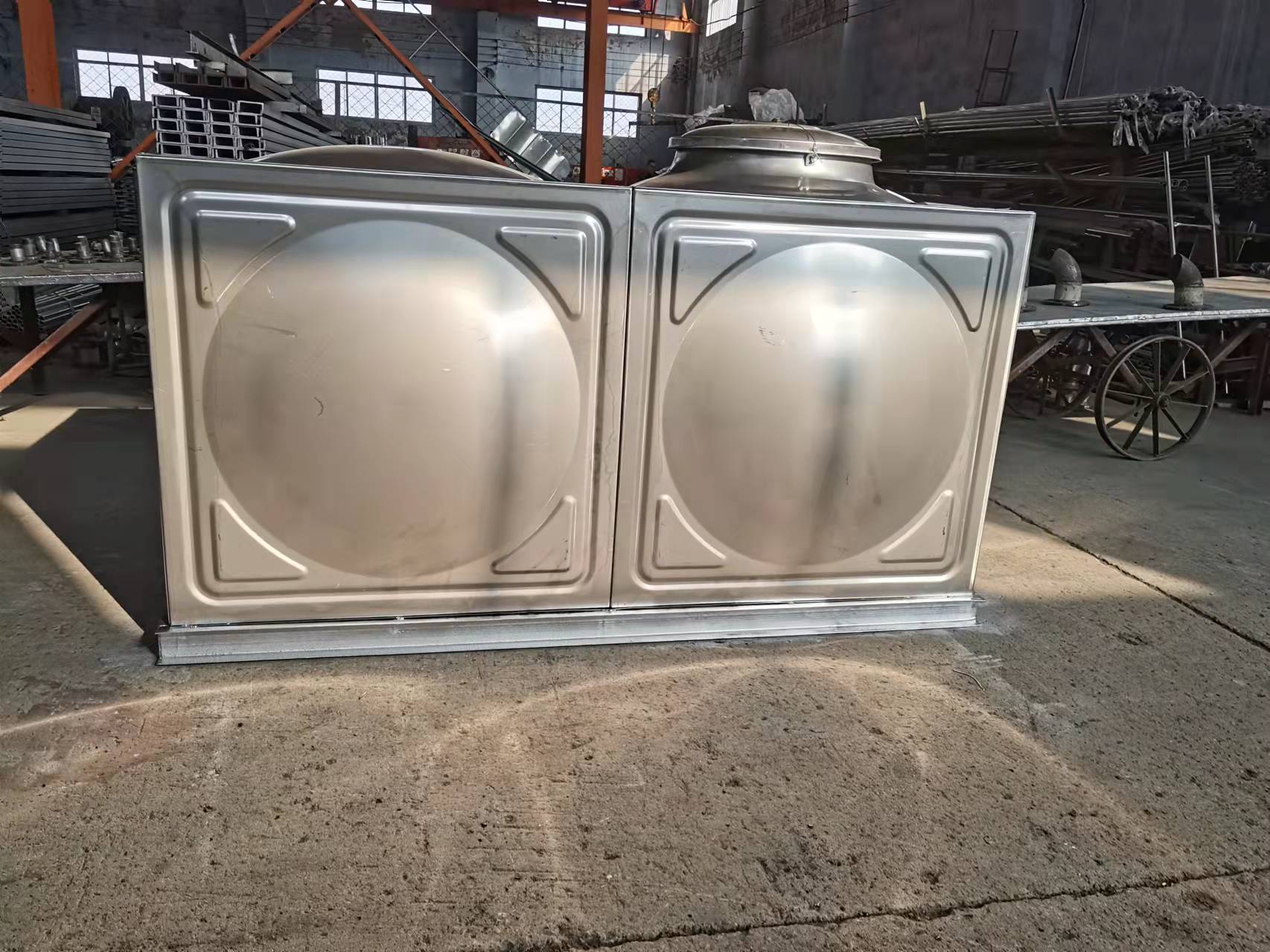先將不銹鋼板材模壓成一米見方的板塊。