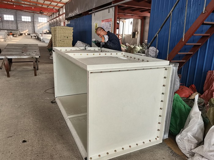 玻璃鋼模壓水箱是由SMC模壓板塊、密封材料、金屬結(jié)構(gòu)件及配管系統(tǒng)現(xiàn)場組裝而成。給設(shè)計(jì)和施工帶來很大方便。一般水箱按標(biāo)準(zhǔn)設(shè)計(jì),水箱需要設(shè)計(jì)。可根據(jù)用戶需要組裝0.125-1500立方米的水箱。若原有水箱需要換,不需要改造房屋,適應(yīng)性很強(qiáng)。研制的定型產(chǎn)品密封帶,該密封帶、耐水、彈性大、變型小,緊固密封。水箱整體強(qiáng)度高,無滲漏,無變形,保養(yǎng)、檢修方便。 玻璃鋼水箱是目前采用的新型水箱。由整體SMC水箱板拼裝而成。其特點(diǎn)是采用食品樹脂,因此水質(zhì)好;具有強(qiáng)度高,重量輕,耐腐蝕,外型美觀,使用時間長,保養(yǎng)管理方便等特點(diǎn)。