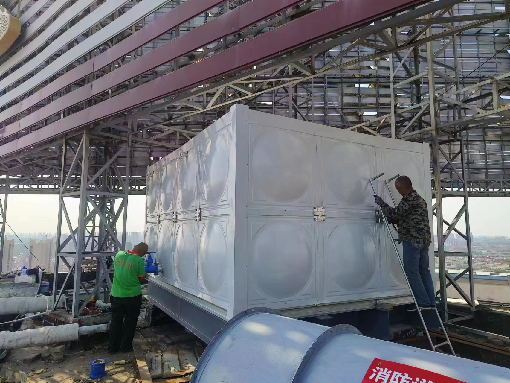 德州德百物流批發城24立方玻璃鋼聚氨酯彩鋼板保溫水箱已經安裝完畢,此次安裝的進度也非???,在規定的時間內完成了安裝和試水,得到了客戶的認可。您的認可就是對我們鼓勵。