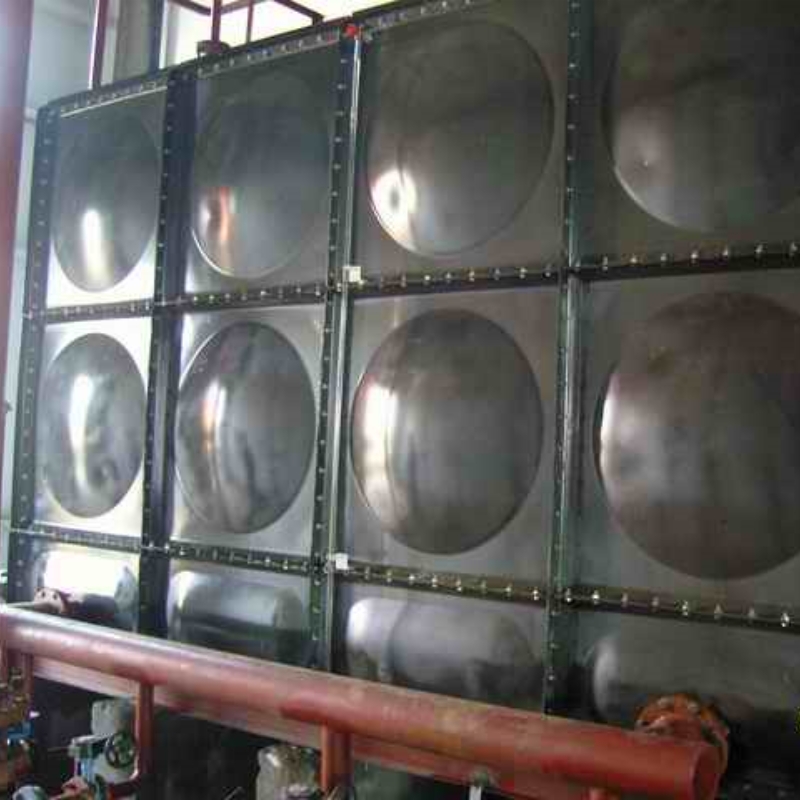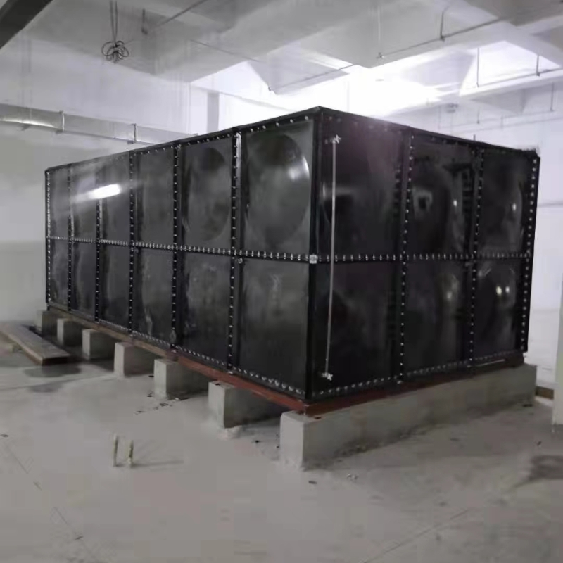 組合式搪瓷鋼板水箱板塊均由搪瓷鋼板拼裝而成,板塊之間用橡膠條密封,用螺栓緊固,使之強度更大。其貯水容積從1.0立方米至1000立方米,高度可達5米。可按本定型產品組合,也可按用戶要求的尺寸生產組合。